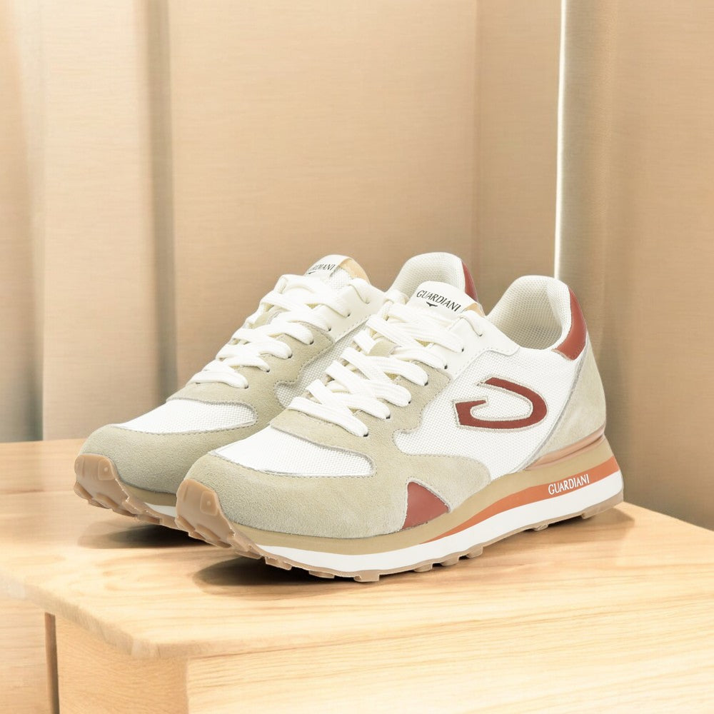 Les baskets WEN de Guardiani sont idéales pour un usage quotidien, avec leur design rétro et leur construction en daim. Grâce à leurs semelles ultra-légères et amortissantes, elles sont devenues un véritable best-seller. Parfaites pour ceux qui recherchent un style décontracté alliant confort et élégance.
