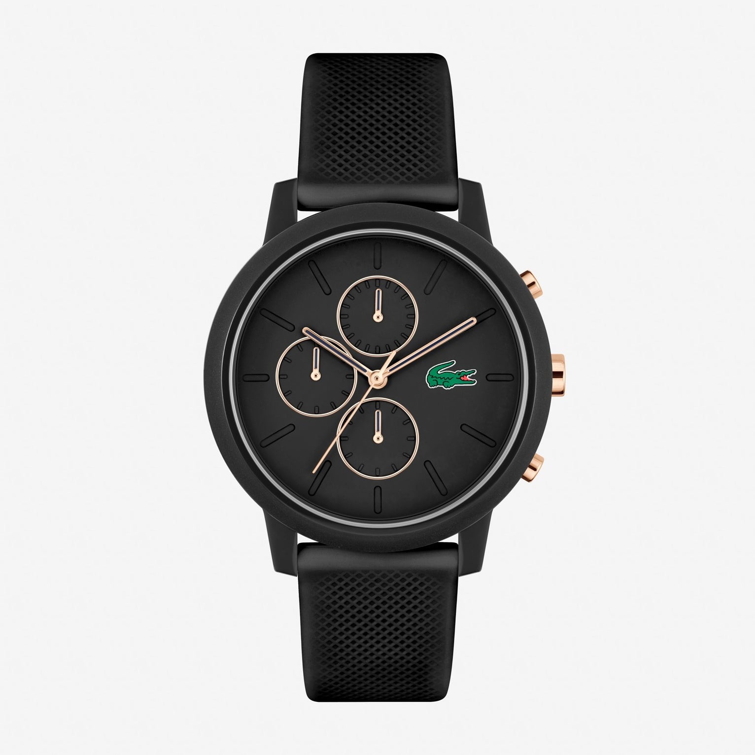 La Lacoste.12.12 emblématique se décline en version chronographe pour vous accompagner dans vos moments sportifs comme dans la vie de tous les jours.